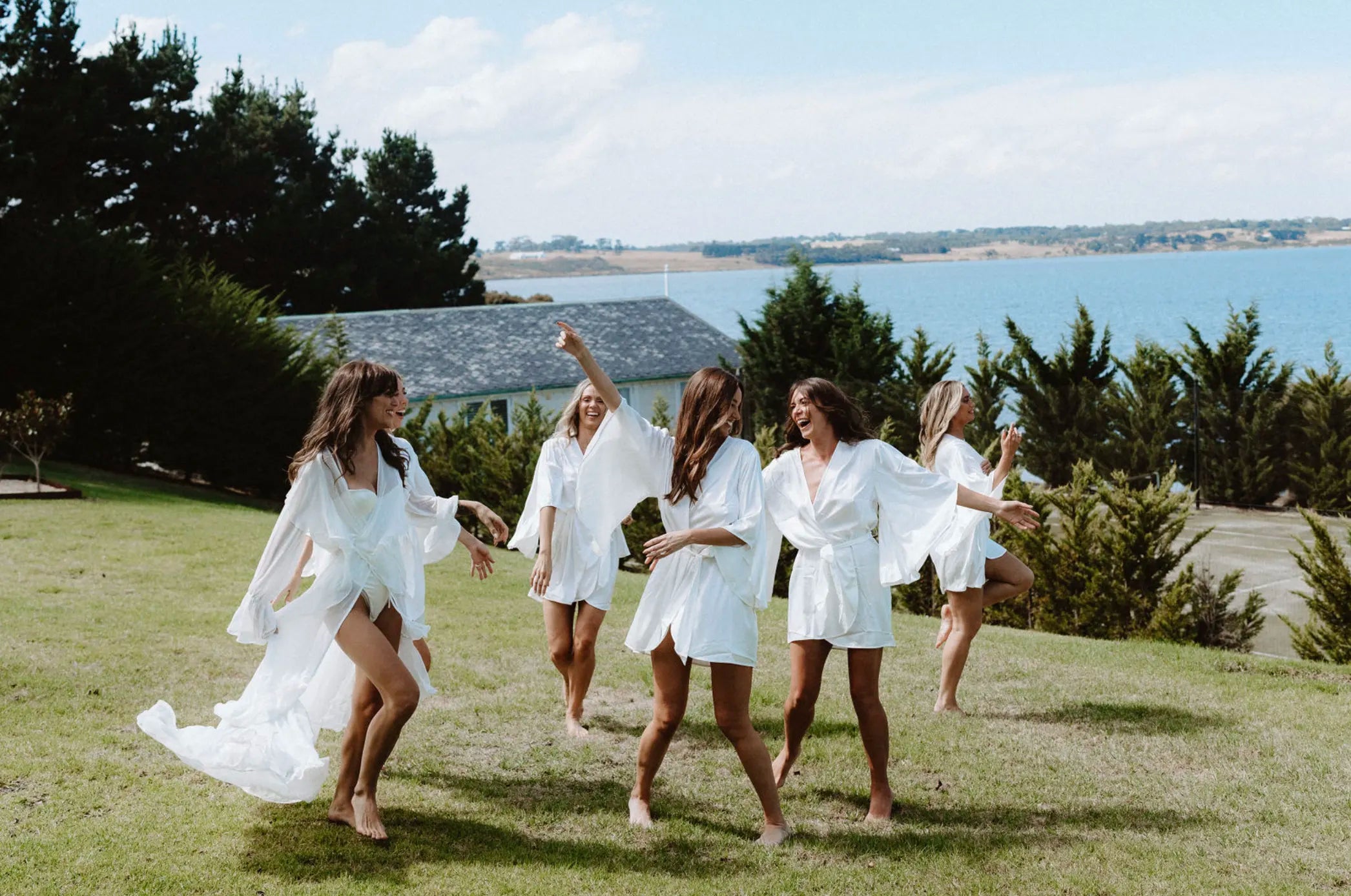 "I looked at my bridesmaids and they just looked and felt like angels. I wore the most beautiful long sheer gown with a white corset underneath and I just felt so special wearing it. Frolicking around the gardens drinking champagne with my best friends - it was magical. Plus the team at Homebodii were just so helpful and ensured my girls and I had everything we needed on time, forever grateful."