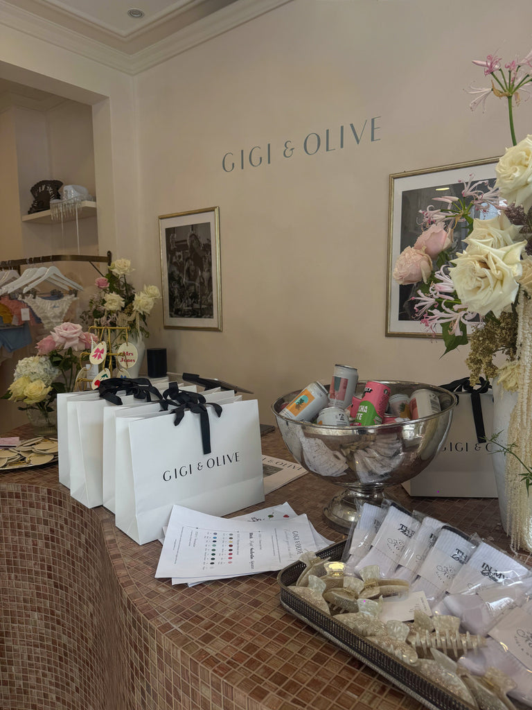 What made this pop up even more special was partnering with our friends at Gigi & Olive, a brand that shares our passion for celebrating meaningful moments. Together we created a space that felt warm, personal, and unmistakably feminine, a true celebration of luxury sleepwear and bridal style.