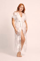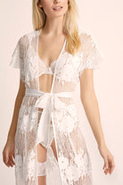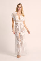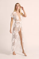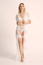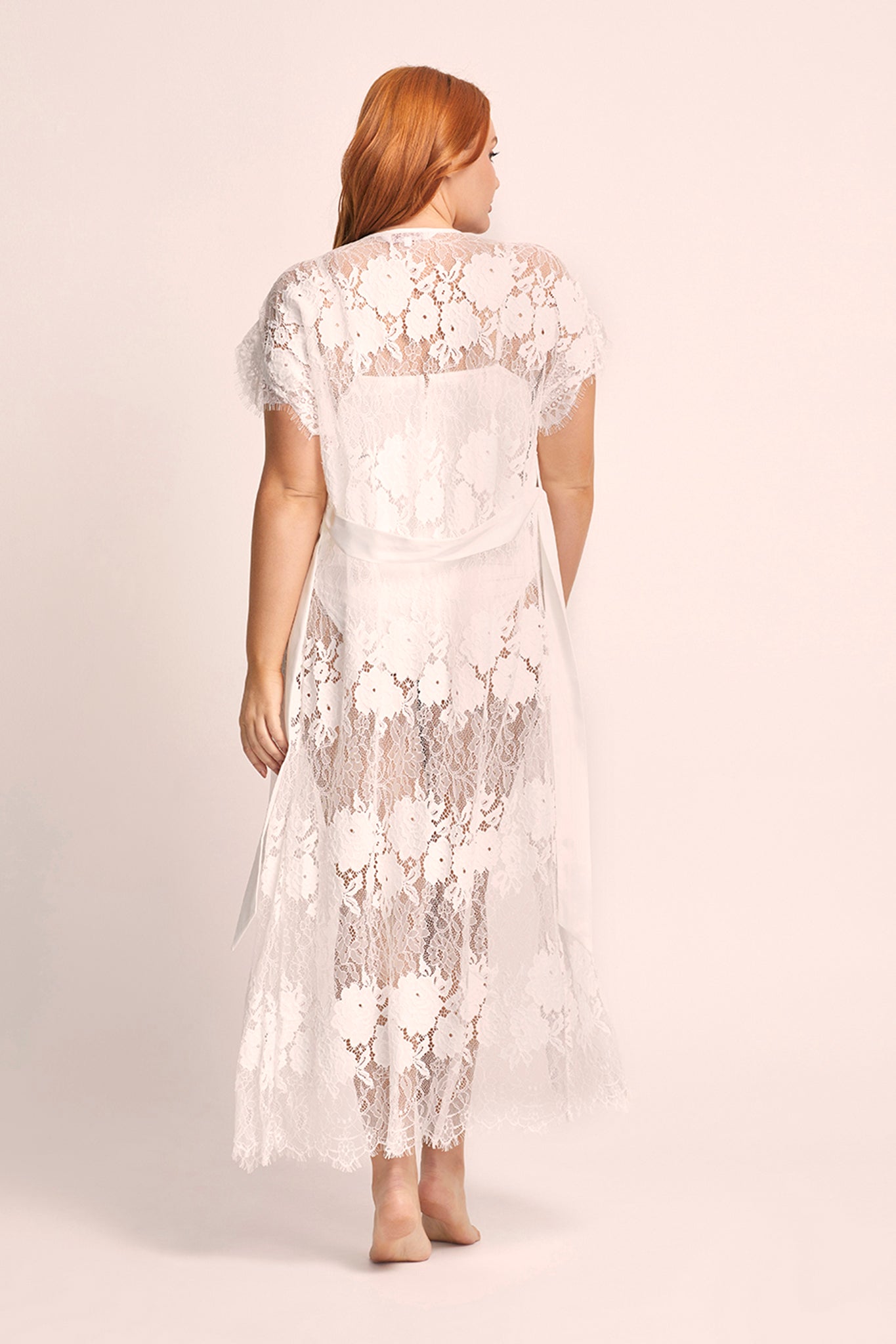 Crafted from delicate floral lace, the Amira Lace Robe wraps you in intricate beauty, evoking a sense of timeless charm. Its exquisite design is further accentuated by an ivory satin detachable belt, allowing you to personalize your look according to your desires.