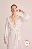 An ideal selection for any special moment, the Sian Lace Robe guarantees you'll feel like a true goddess. Whether you're savoring champagne at a sophisticated soirée or enjoying an intimate evening with your loved one, this robe effortlessly radiates timeless allure. Immerse yourself in the lap of luxury with the Sian Lace Robe.