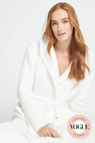 Looking for a robe that's as soft as a cloud and will make you feel like you're being hugged by your mom? Look no further than homebodii's Ultimate Luxe Robe! Made from the softest stretch plush material in white, this robe will be your new favorite way to stay cozy this winter. It features cuffed long sleeves, a self-tie belt, and two patch pockets, plus a hood for extra warmth. And because it's from Homebodii, you know it's only the best quality. So go ahead and indulge yourself in the ultimate luxury with this robe!