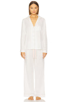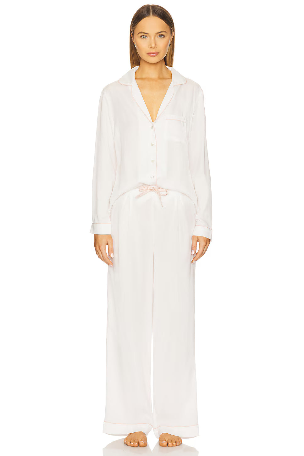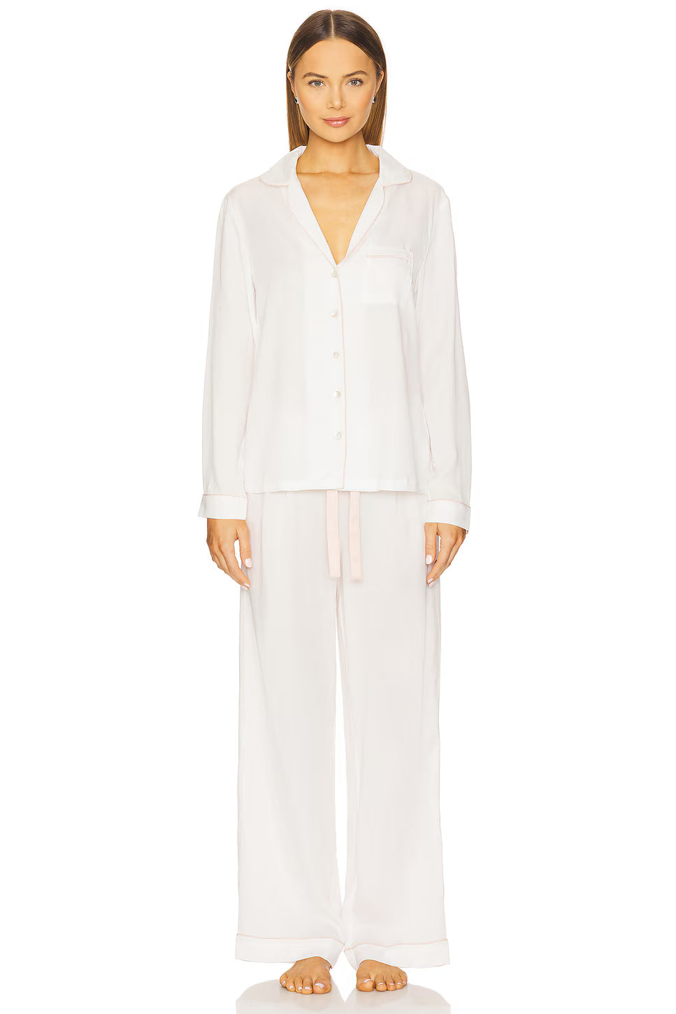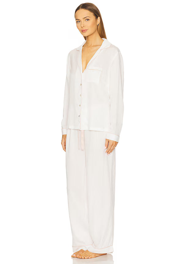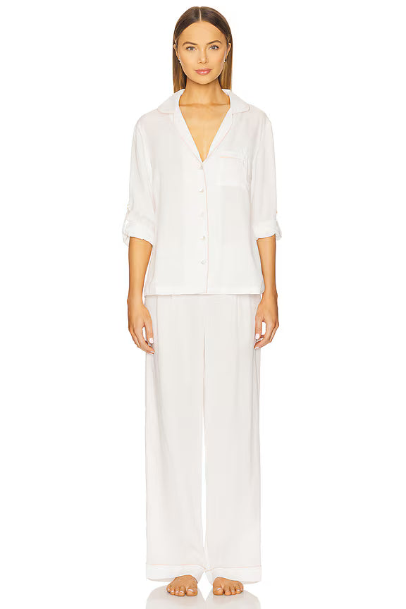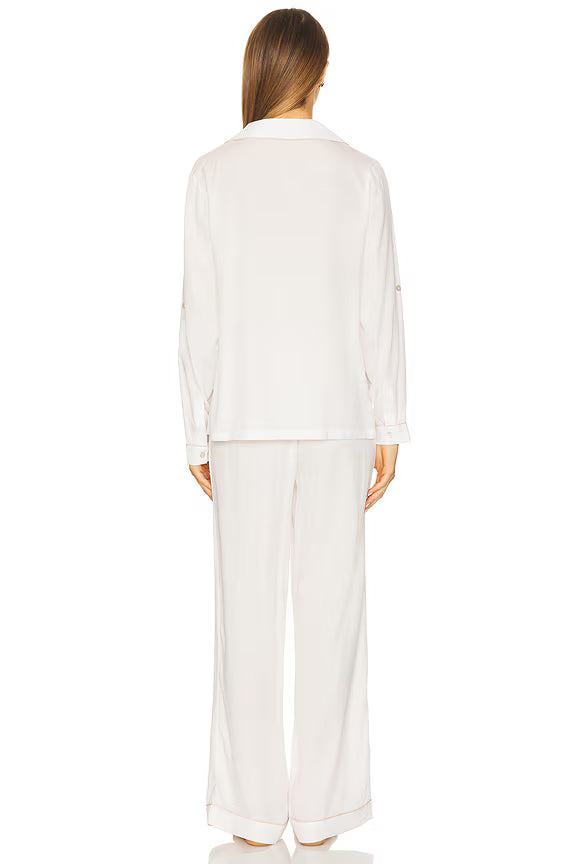 Eva Lounge Tencel™ Pyjama Set - White with Blush Piping