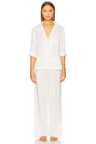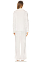 Crafted from 100% certified TENCEL™ Lyocell in pristine white with delicate blush piping, this set feels buttery soft with a luxurious silk-like drape. Made from sustainably harvested wood pulp using environmentally responsible processes, these pyjamas are breathable and temperature-regulating, supporting your body's natural cooling system. The moisture-wicking fibres keep you comfortable all night long. With long pants that flow beautifully, this set is perfect for year-round comfort. Whether you're enjoying warm evenings, working from home, or simply choosing eco-conscious sleepwear, you'll love the sumptuous feel.
