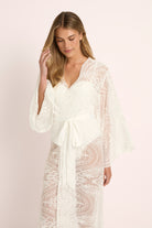 Ethereal and timeless, the Homebodii® Ophelia Lace Maxi Robe is a masterpiece of delicate craftsmanship and feminine grace. Designed in Australia, this floor-length robe is crafted from sheer ivory lace featuring exquisite paisley-inspired patterns, evoking a sense of vintage artistry and modern romance.