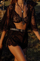 Looking for something audacious and unique? The Sian Lace Satin Cami Set is crafted from exquisite black cotton lace with a captivating floral pattern, expertly cut on the bias for a flattering and comfortable fit.