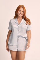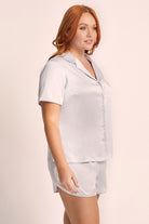 Experience the perfect fusion of timeless sophistication and unparalleled comfort with homebodii®'s Toni short sleeve satin pajama set. The self-colored satin buttons add a touch of vintage Hollywood glamour, evoking a sense of classic elegance. Meanwhile, the elasticized shorts are thoughtfully designed to ensure you have the most dreamy and comfortable sleep.