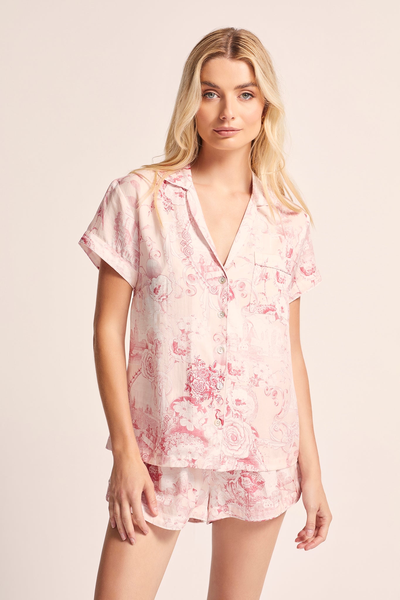 This exquisite Camille short pyjama set features a thoughtfully designed top and bottom, meticulously crafted from sustainable TENCEL™ fabric. Known for its luxurious softness and breathability, TENCEL™ ensures a dreamy and comfortable night's sleep. The top showcases delicate details, while the bottoms offer a relaxed fit for effortless lounging.