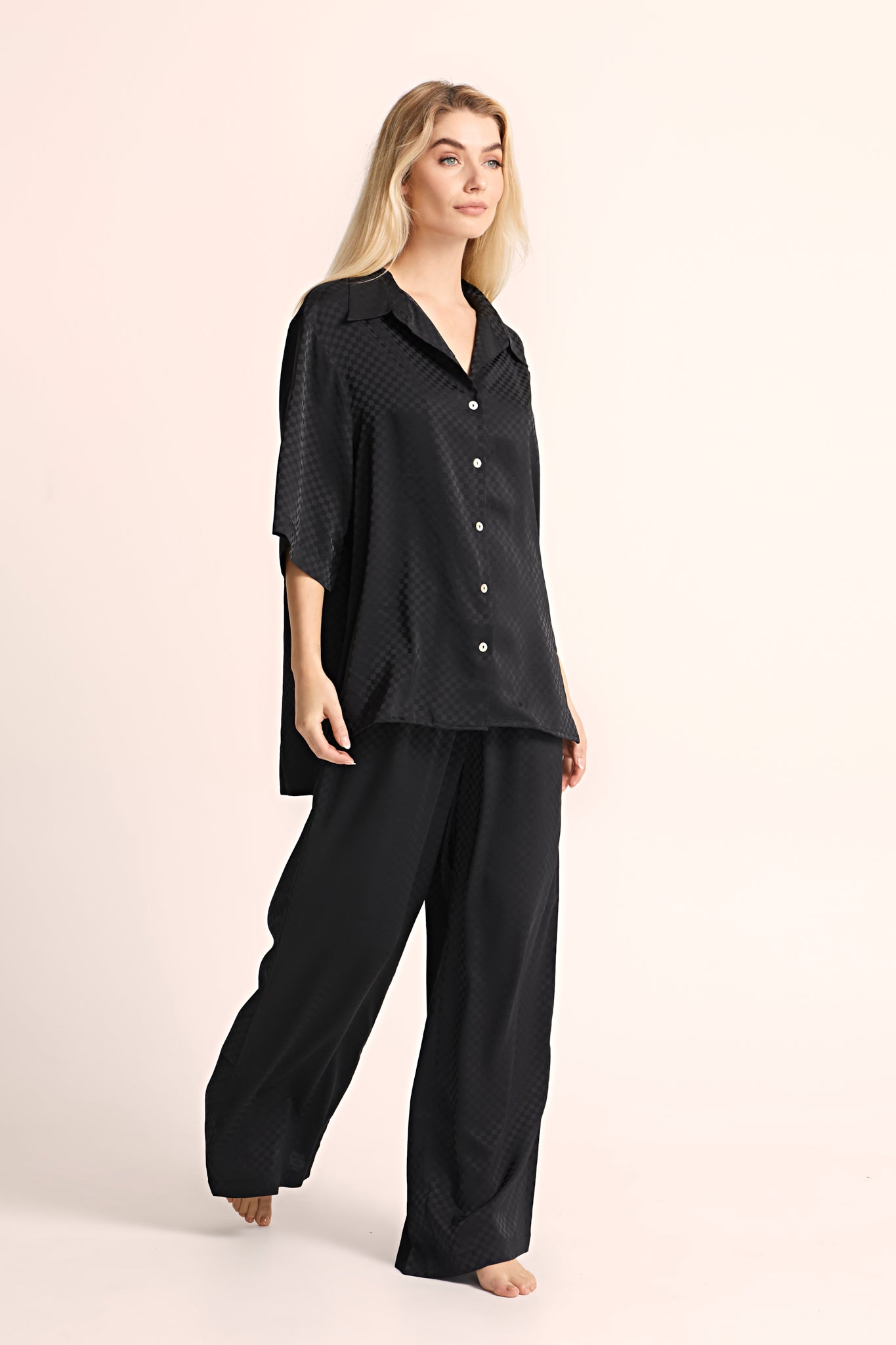 4. Versatile Pieces: The Gigi Checked Satin Range offers a variety of pieces, including both traditional and oversized loungewear. Mix and match to curate your perfect loungewear ensemble or choose a standout piece that suits your unique style.