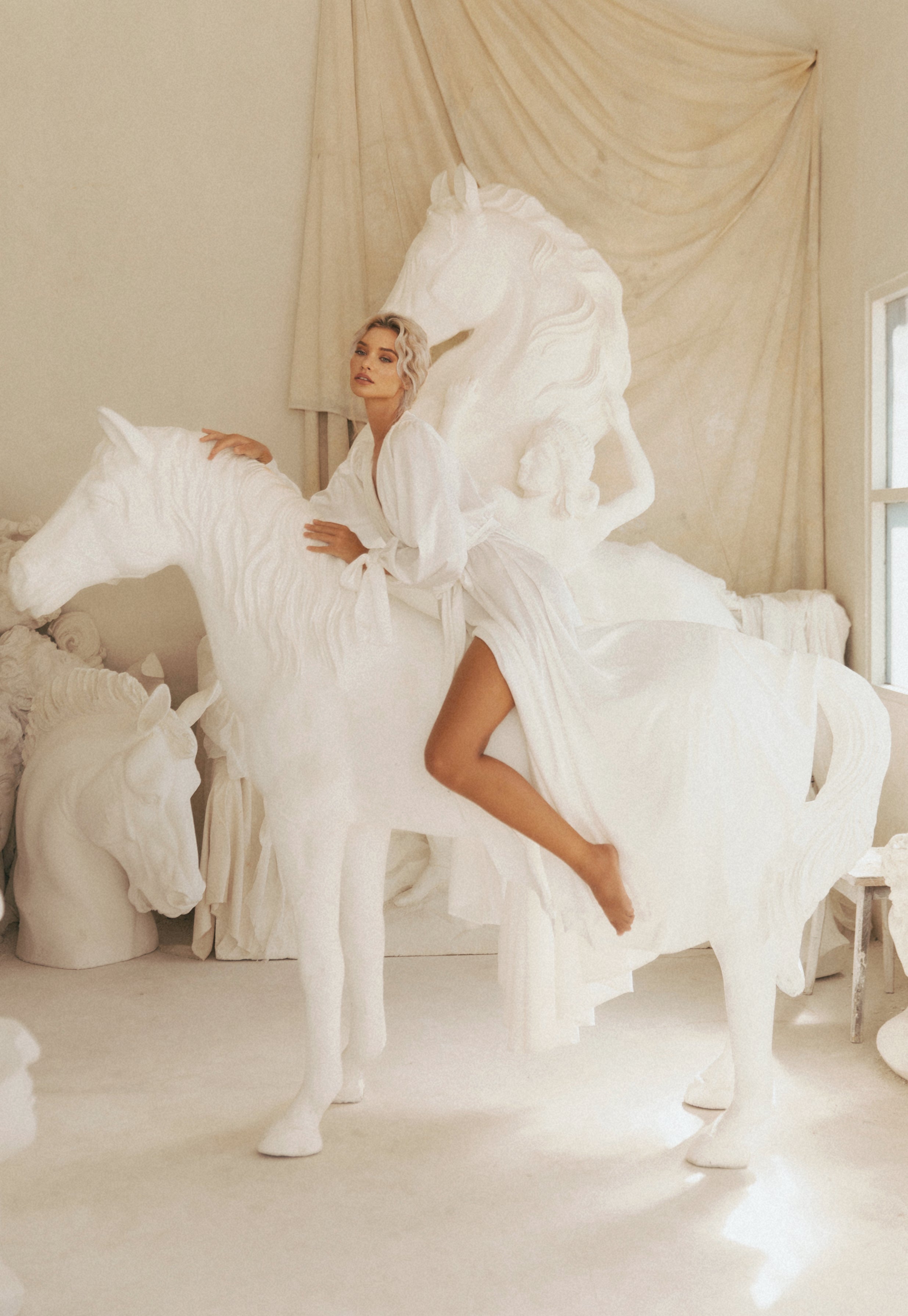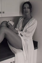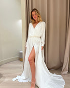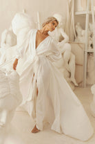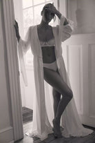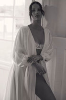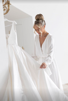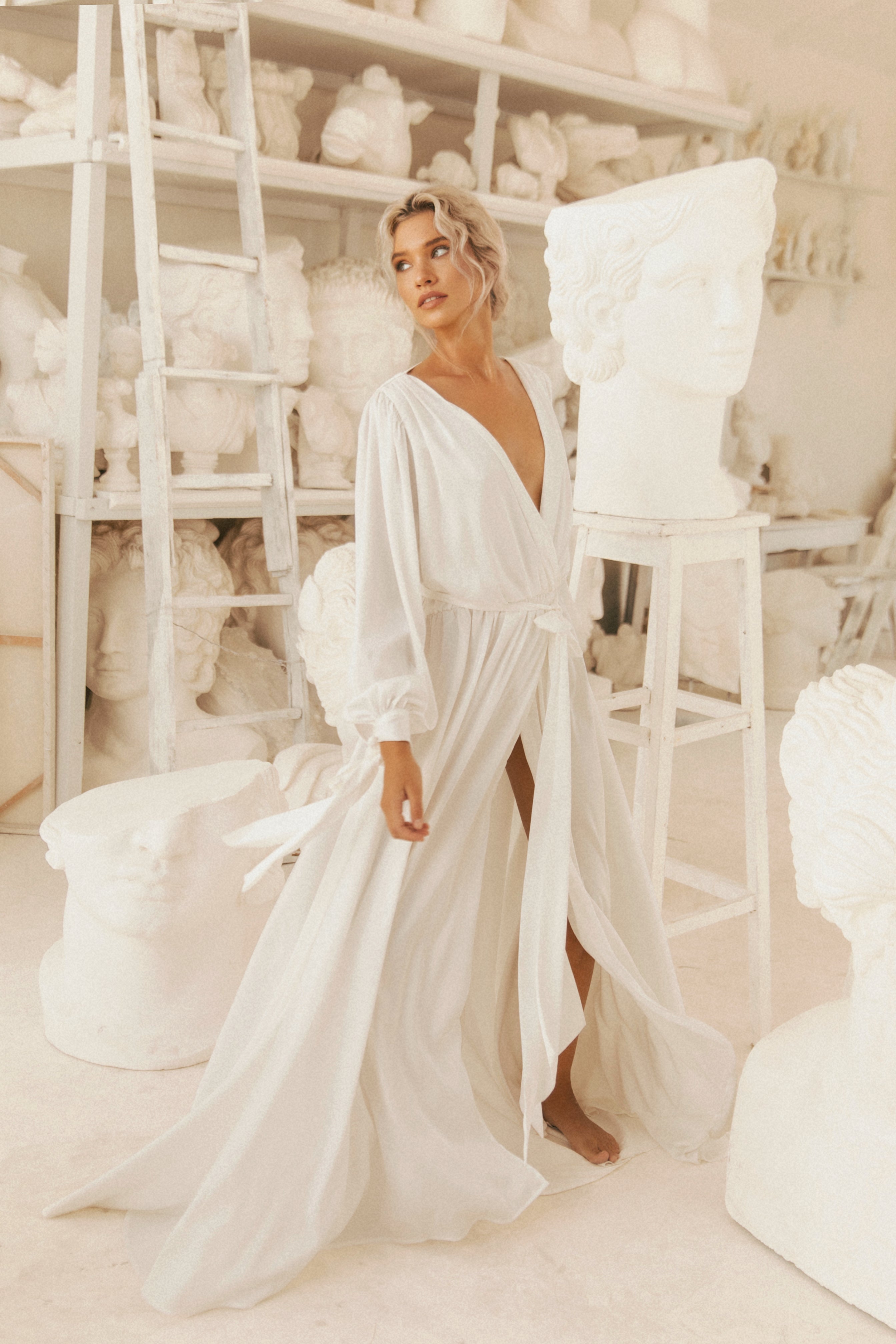Introducing the Homebodii Hermione robe a captivating piece that embraces the wedding dress trend with sophistication and style.
