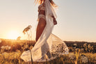 The relaxed kimono silhouette falls effortlessly over the body, while the self-tie waist allows for a flattering, adjustable fit. Lightweight yet luminous, Aurora is perfect worn over lingerie, sleepwear, or swim for a look that feels confident, modern, and undeniably luxe.