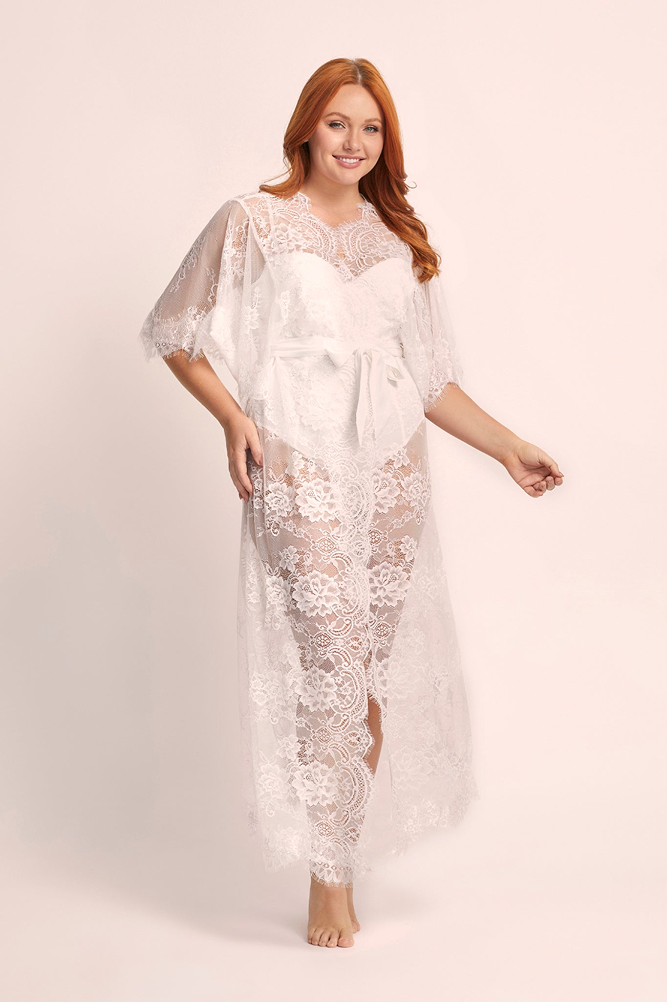 Discover the sheer elegance and undeniable beauty of our homebodii® Kassiah Kimono Lace Robe, a true gem among lace bridal robes. This exquisite piece seamlessly marries elegance and beauty, setting the stage for those unforgettable pre-wedding moments and beyond.