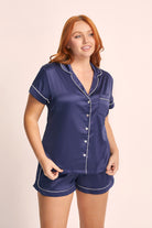 Classic Grace Short Pyjama Set - Navy with White Piping