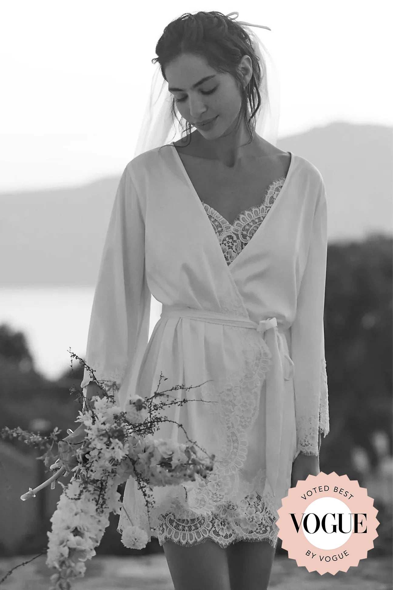 An ideal selection for any special moment, the Sian Lace Robe guarantees you'll feel like a true goddess. Whether you're savoring champagne at a sophisticated soirée or enjoying an intimate evening with your loved one, this robe effortlessly radiates timeless allure. Immerse yourself in the lap of luxury with the Sian Lace Robe.